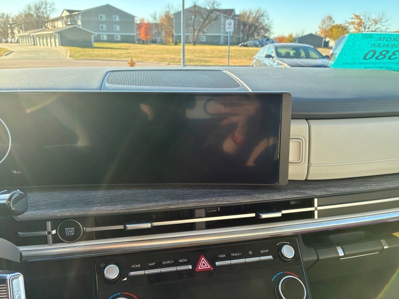 - Radio: AM/FM/HD Bose Premium Audio System -inc: 12 speakers including subwoofer, external amplifier, 12.3" wide touchscreen, wireless Apple CarPlay and Android Auto, Bluetooth® hands-free w/wireless audio streaming, dynamic voice recognition, USB connectivity, SiriusXM, wifi hotspot, Blue Link connected car system, navigation system including traffic flow w/incident data via HD Radio (HERE), OTA updates and rear seat quiet mode