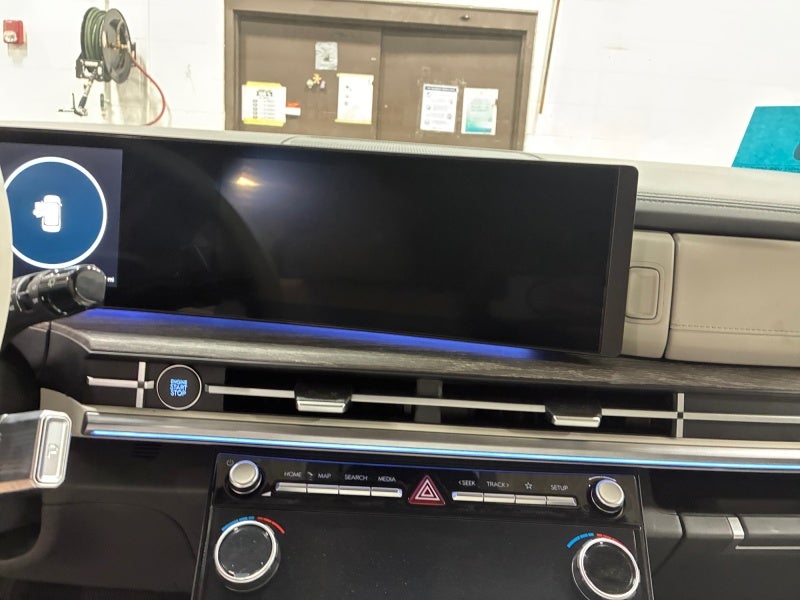 - Radio: AM/FM/HD Bose Premium Audio System -inc: 12 speakers including subwoofer, external amplifier, 12.3" wide touchscreen, wireless Apple CarPlay and Android Auto, Bluetooth® hands-free w/wireless audio streaming, dynamic voice recognition, USB connectivity, SiriusXM, wifi hotspot, Blue Link connected car system, navigation system including traffic flow w/incident data via HD Radio (HERE), OTA updates and rear seat quiet mode