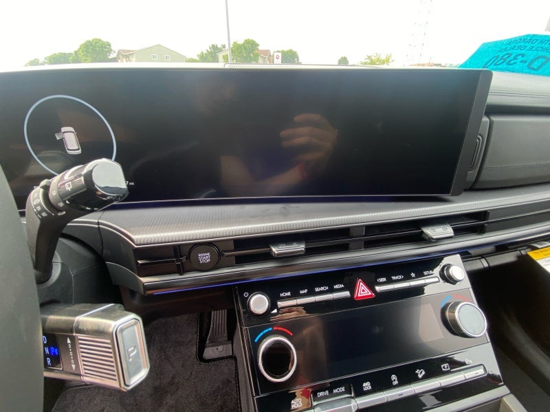 - Radio: AM/FM/HD Bose Premium Audio System -inc: 12 speakers including subwoofer, external amplifier, 12.3" wide touchscreen, Apple CarPlay and Android Auto, Bluetooth® hands-free w/wireless audio streaming, dynamic voice recognition, USB connectivity, SiriusXM, Blue Link+ connected car system, over-the-air updating capability, navigation system including traffic flow w/incident data via HD Radio (HERE) and rear seat quiet mode